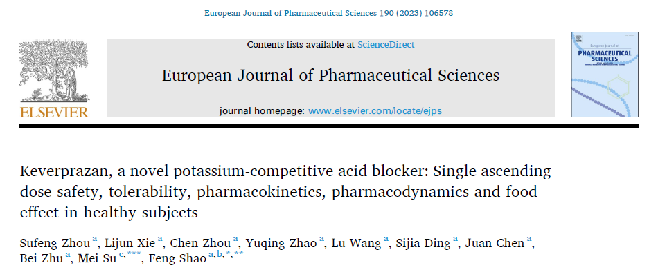 1.???? Sufeng?Zhou, et al. Keverprazan, a novel potassium-competitive acid blocker: Single ascending dose safety, tolerability, pharmacokinetics, pharmacodynamics and food effect in healthy subjects. Eur J Pharm Sci. 2023 Sep 2;106578. doi: 10.1016/j.ejps.2023.106578.