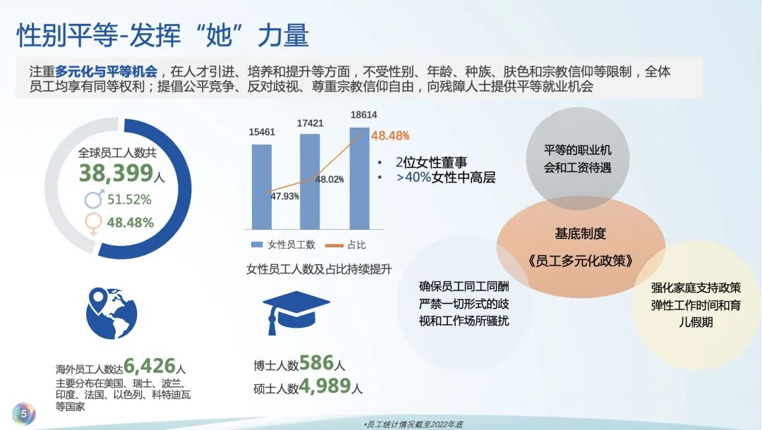 ¸´ÐÇÒ½Ò©×÷Ϊһ¼ÒÁ¢ÒìÇý¶¯µÄÈ«Çò»¯Ò½Ò©¿µ½¡¹¤Òµ¼¯ÍÅ£¬£¬£¬£¬£¬ÄÐŮԱ¹¤±ÈÀý½Ïƽºâ£¬£¬£¬£¬£¬Å®ÐÔÔÚÆóҵʩչ×ÅÔ½À´Ô½¶àµÄ×÷Ó㬣¬£¬£¬£¬×èÖ¹2022Äêµ×£¬£¬£¬£¬£¬¸´ÐÇÒ½Ò©È«ÇòÔ±¹¤Êý´ï38399ÈË£¬£¬£¬£¬£¬ÆäÖÐÅ®ÐÔÔ±¹¤18614ÈË£¬£¬£¬£¬£¬Õ¼È«ÌåÔ±¹¤ÈËÊý48.48%£¬£¬£¬£¬£¬ÏÖÔÚ£¬£¬£¬£¬£¬¸´ÐÇÒ½Ò©¶Ê»áÖÐÓÐ2λŮÐÔ¶Ê£¬£¬£¬£¬£¬ÔÚÖвãÒÔÉϼ°¸ß¼¶ÖÎÀí²ãÖÐÅ®ÐԵıÈÀýÒ²´óÓÚ40%¡£¡£¡£¡£¡£¡£