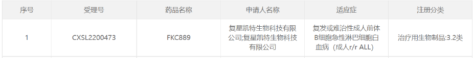 2022Äê12ÔÂ20ÈÕ£¬£¬£¬£¬£¬£¬£¬¹ú¼ÒÒ©Æ·¼àÊÓÖÎÀí¾ÖÒ©Æ·ÉóÆÀÖÐÐÄ£¨CDE£©¹ÙÍøÐÅÏ¢ÏÔʾ£º¾Éó²é£¬£¬£¬£¬£¬£¬£¬2022Äê9ÔÂ21ÈÕÊÜÀíµÄ¸´ÐÇ¿ÌØÉúÎïÊÖÒÕ¹«Ë¾£¨¼ò³Æ¸´ÐÇ¿ÌØ£©CAR-Tϸ°ûÖÎÁƲúÆ·FKC889ÇкÏÒ©Æ·×¢²áµÄÓйØÒªÇ󣬣¬£¬£¬£¬£¬£¬Ô޳ɿªÕ¹ÖÎÁƸ´·¢»òÄÑÖÎÐÔ³ÉÈËǰÌåBϸ°û¼±ÐÔÁܰÍϸ°û°×Ѫ²¡£¡£¡£¡£¡£¨³ÉÈËR/R ALL£©µÄÒ©ÎïÁÙ´²ÊÔÑ飬£¬£¬£¬£¬£¬£¬ÊÜÀíºÅΪCXSL2200473£¬£¬£¬£¬£¬£¬£¬×¢²á·ÖÀàΪ3.2Àࣨ¾³ÍâÒÑÉÏÊС¢¾³ÄÚδÉÏÊеÄÉúÎïÖÆÆ·É걨ÔÚ¾³ÄÚÉú²úÉÏÊУ©[1,2]¡£¡£¡£¡£¡£ÕâÊÇFKC889¼Ì½ñÄê3Ô»ñÅú¿ªÕ¹ÖÎÁƸ´·¢»òÄÑÖÎÐÔÌ×ϸ°ûÁܰÍÁö£¨R/R MCL£©µÄÁÙ´²ÊÔÑéÒÔÀ´£¬£¬£¬£¬£¬£¬£¬ÔÙ¶Èͨ¹ýÐÂ˳Ӧ֢µÄÁÙ´²ÊÔÑéÉêÇë¡£¡£¡£¡£¡£