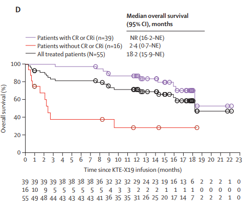 R/R ALLµÄ»ñÅúÊÇ»ùÓÚÒ»Ïîµ¥±Û¡¢¹ú¼Ê¶àÖÐÐÄ¡¢¿ª·ÅÐÔ¡¢1/2ÆÚÑо¿ZUMA-3 (NCT02614066)¡£¡£¡£¡£¡£Ñо¿Ð§¹ûÏÔʾ£¬£¬£¬£¬£¬£¬£¬2018Äê10ÔÂ1ÈÕÖÁ2019Äê10ÔÂ9ÈÕ£¬£¬£¬£¬£¬£¬£¬¹²55Àý»¼ÕßÍê³ÉÁËBrexucabtagene autoleucel (FKC889)»ØÊä¡£¡£¡£¡£¡£ÖÐÎ»Ëæ·Ã16.4¸öÔ£¬£¬£¬£¬£¬£¬£¬39Àý£¨71%£»£»£»£»£»95%CI 57-82£¬£¬£¬£¬£¬£¬£¬P£¼0.0001£©»¼ÕßµÖ´ïÍêÈ«»º½â£¨CR£©»òÍêÈ«»º½â°éѪҺѧ²»ÍêÈ«»Ö¸´£¬£¬£¬£¬£¬£¬£¬ÆäÖÐ31Àý£¨56%£©»ñµÃCR¡£¡£¡£¡£¡£ÖÐλ»º½âʱ¼ä12.8¸öÔ£¨95%CI 8.7-²»¿ÉÆÀ¹À£©£¬£¬£¬£¬£¬£¬£¬ÖÐλ×ÜÉúÑÄÆÚ18.2¸öÔ£¨95%CI 15.9-²»¿ÉÆÀ¹À£©¡£¡£¡£¡£¡£ÔÚÓ¦´ðµÄ»¼ÕßÖУ¬£¬£¬£¬£¬£¬£¬ÖÐλ×ÜÉúÑÄÆÚδµÖ´ï£¨Í¼2£©£¬£¬£¬£¬£¬£¬£¬ÆäÖÐ38Àý£¨97%£©»ñµÃMRDÒõÐÔ[6]¡£¡£¡£¡£¡£